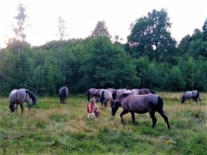 Wir begleiten eine Herde von 14 Konik Polski auf ihren weitläufigen Weiden, teilen einfache Mahlzeiten am Feuer in ihrer Nähe und verbringen die Nacht unter dem Sternenhimmel. Als Gäste lassen wir uns auf ihren natürlichen Rhythmus ein und erleben, wie aus absichtslosem Zusammensein, Vertrauen und echte Begegnung entstehen.